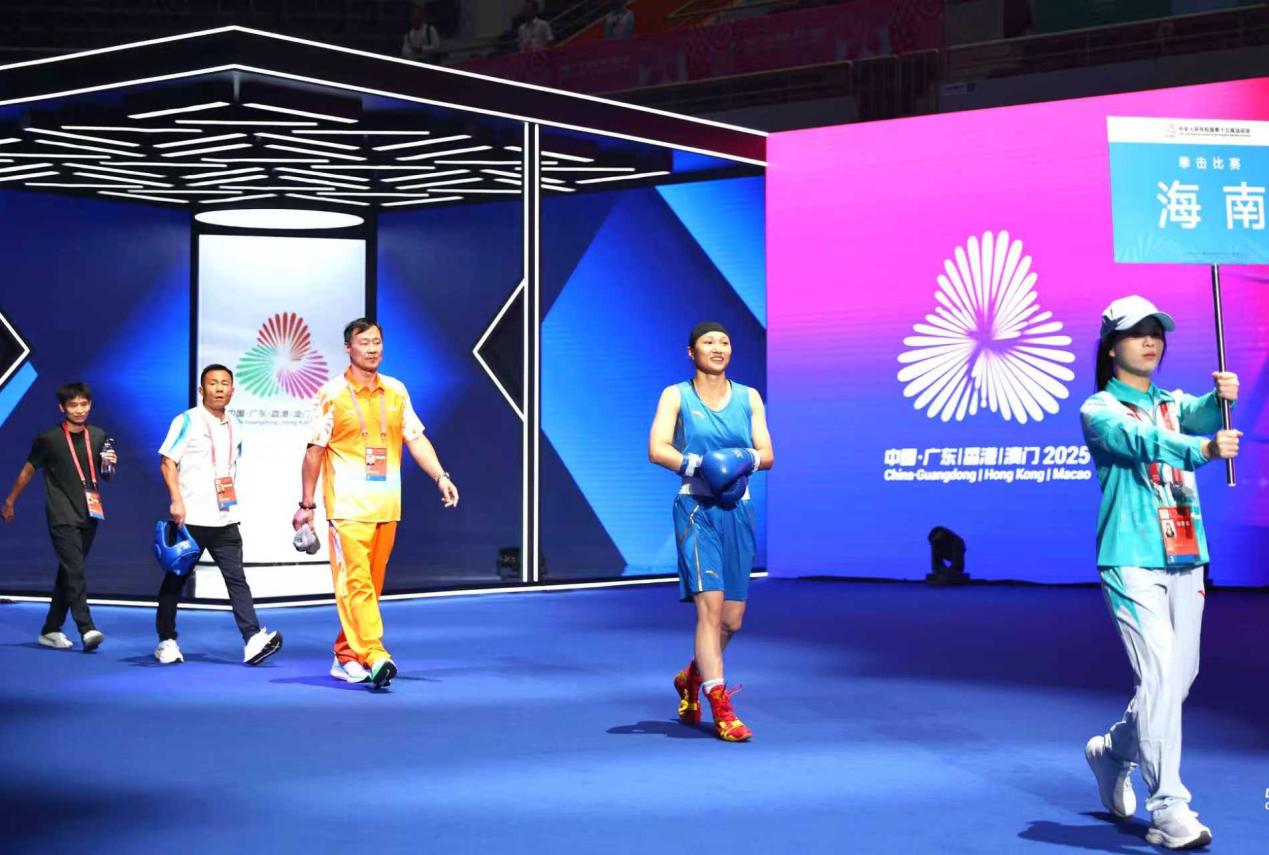 拳击赛场,11月2日,海南选手刘欣悦在女子60公斤级比赛中战胜甘肃选手,晋级八强,她将于11月6日出战1/4决赛,冲击半决赛资格。