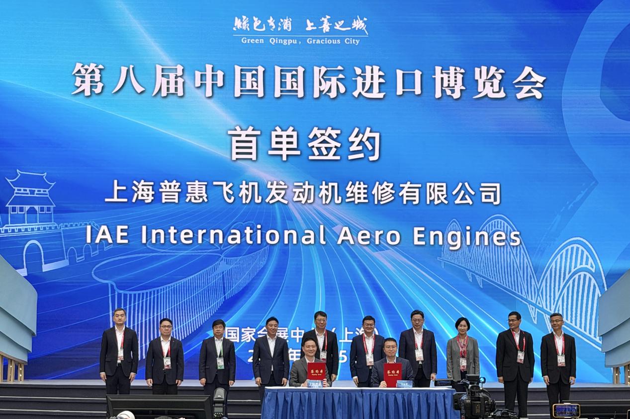 人民网上海11月5日电 作为全球经贸领域的重要盛会,今天,第八届中国国际进口博览会在上海国家会展中心隆重启幕。下午,采购商上海普惠飞机发动机维修有限公司与参展商IAE签署了价值超亿美元的V2500发动机零部件采购订单,标志着第八届进博会首单成功落地青浦。同时,参展商蒂森克虏伯新纪元氢能科技(上海)有限公司和唐艺臻选(上海)食品科技有限公司获得青浦区颁发首张营业执照和首张食品经营许可证。青浦区还有三家企业获得了AEO高级认证,进一步构建了完整的产业链与国际化运营能力。