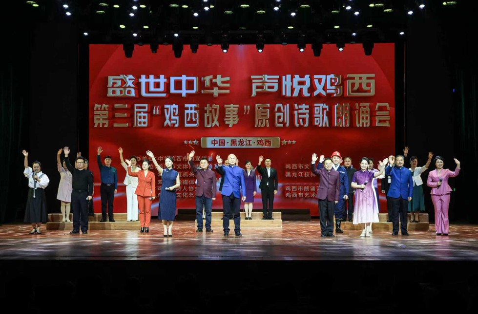 人民网哈尔滨10月24日电 10月24日,第三届“鸡西故事”原创诗歌朗诵会在鸡西市大剧院圆满落幕。本次朗诵会以“挖掘城市底蕴、传承红色基因”为主题,通过朗诵与音乐、舞美交融的艺术形式,生动展现了鸡西历史发展的壮阔画卷。活动吸引了市直机关干部、在校师生、文艺协会代表等700余人现场观看。