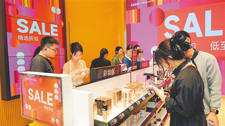 十一月一日,海口国际免税城内,众多旅客在选购免税商品。海南日报全媒体记者 张茂 摄